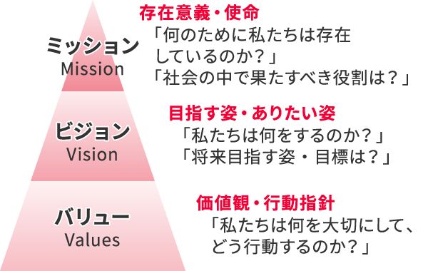 価値観は、ミッション・ビジョンの根幹となり、組織風土の基盤となる。